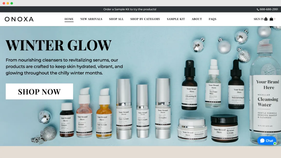 Onoxa keeps it simple and transparent for anyone looking to start a skincare line. All their private label products are listed on the website, complete with detailed information and prices—no hidden surprises. A major plus is their sample kits, available for each product category, making it easy to test before you commit. The downside? They have a fairly limited selection of products and customization options, which might not work for brands seeking variety. Still, with low MOQs and a straightforward process, it’s a solid choice for beginners wanting to get started quickly.