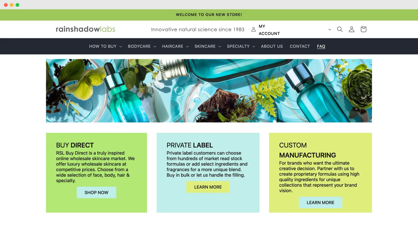 RainShadow Labs offers a unique approach to private label skincare by allowing you to start with as little as 2 ounces for most formulations. However, they specialize in formulation manufacturing, meaning you’ll need to handle packaging and filling independently. This adds complexity, as you’ll be responsible for ensuring packaging compatibility and conducting stability testing. While this approach offers flexibility and comes with potential cost savings, it requires additional effort and expertise to manage the production process effectively.