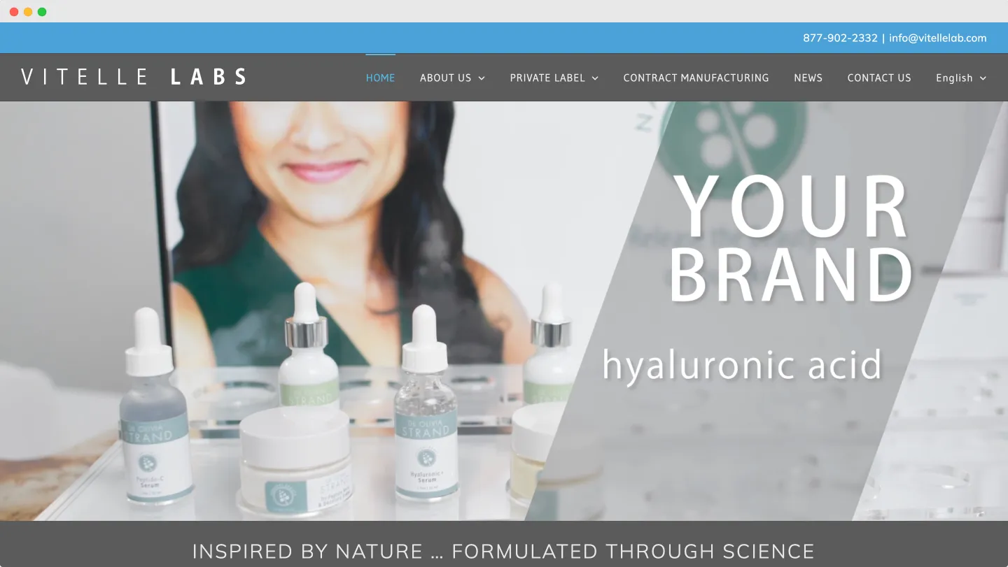 Vitelle Labs positions itself as a manufacturer that caters to brands ready to grow. Their website shows a strong focus on offering professional-grade products, which seems better suited for businesses already established in the skincare space.
