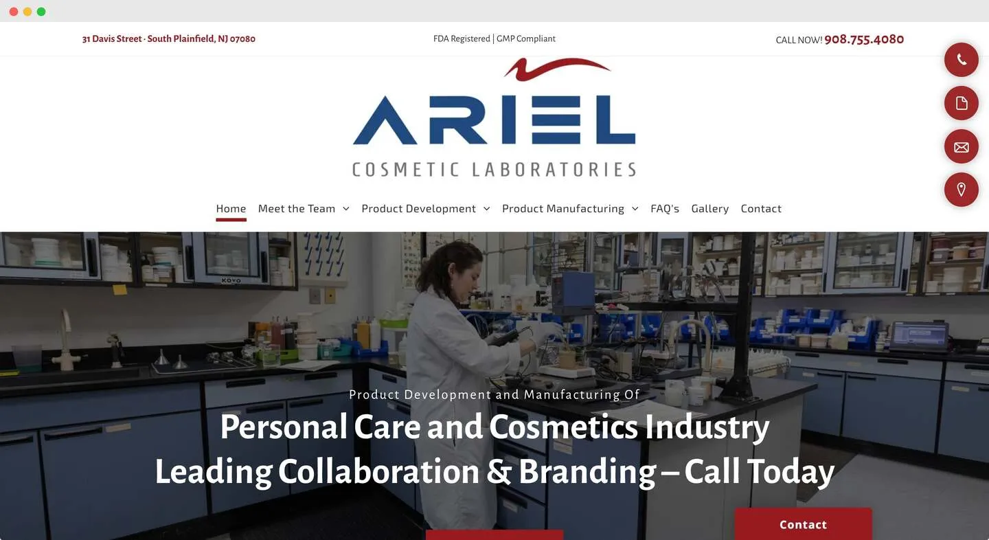 Ariel Laboratories, based in New Jersey, specializes in the development and manufacturing of custom skincare, color cosmetics, and sun care products. With over 35 years of experience, they offer a comprehensive range of services, including formulation, production, and packaging, supported by strong customer service and compliance with international regulations.