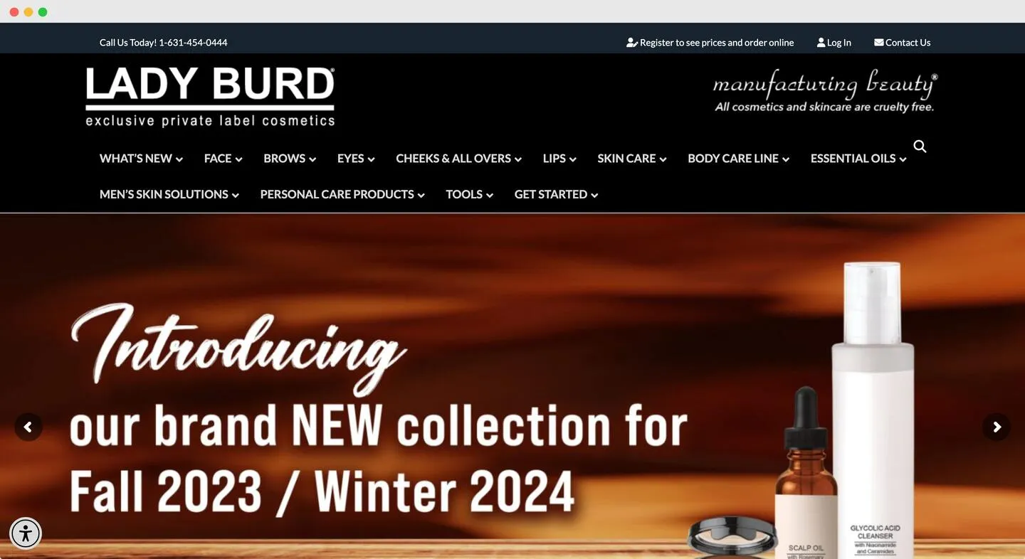 Lady Burd is a cosmetic contract manufacturer offering a wide range of products, including skincare, makeup, and personal care. They provide low Minimum Order Quantities (MOQs), starting at $150 for stock items or 12 pieces per shade for private label.