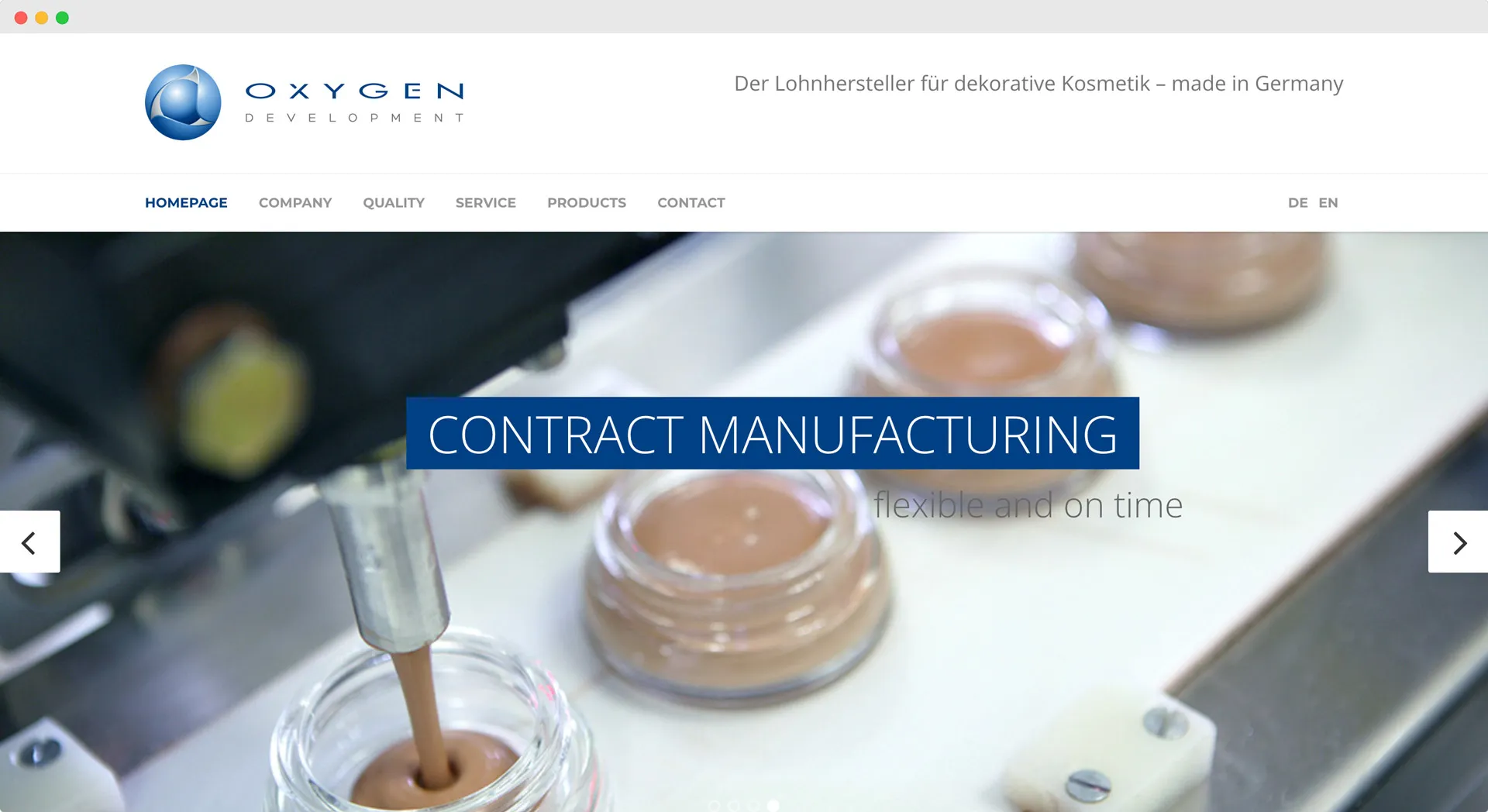 Oxygen Development specializes in contract manufacturing for lipsticks and compact powder. They emphasize high quality with certifications like ISO 22716 (GMP), EcoVadis, and IFS-HPC.