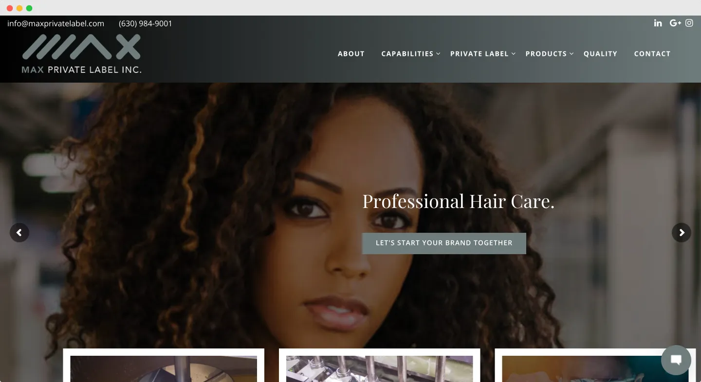 Max Private Label specializes in the development and manufacturing of private label hair and skin care products. They offer a range of hair care products including shampoos, conditioners, and styling products.