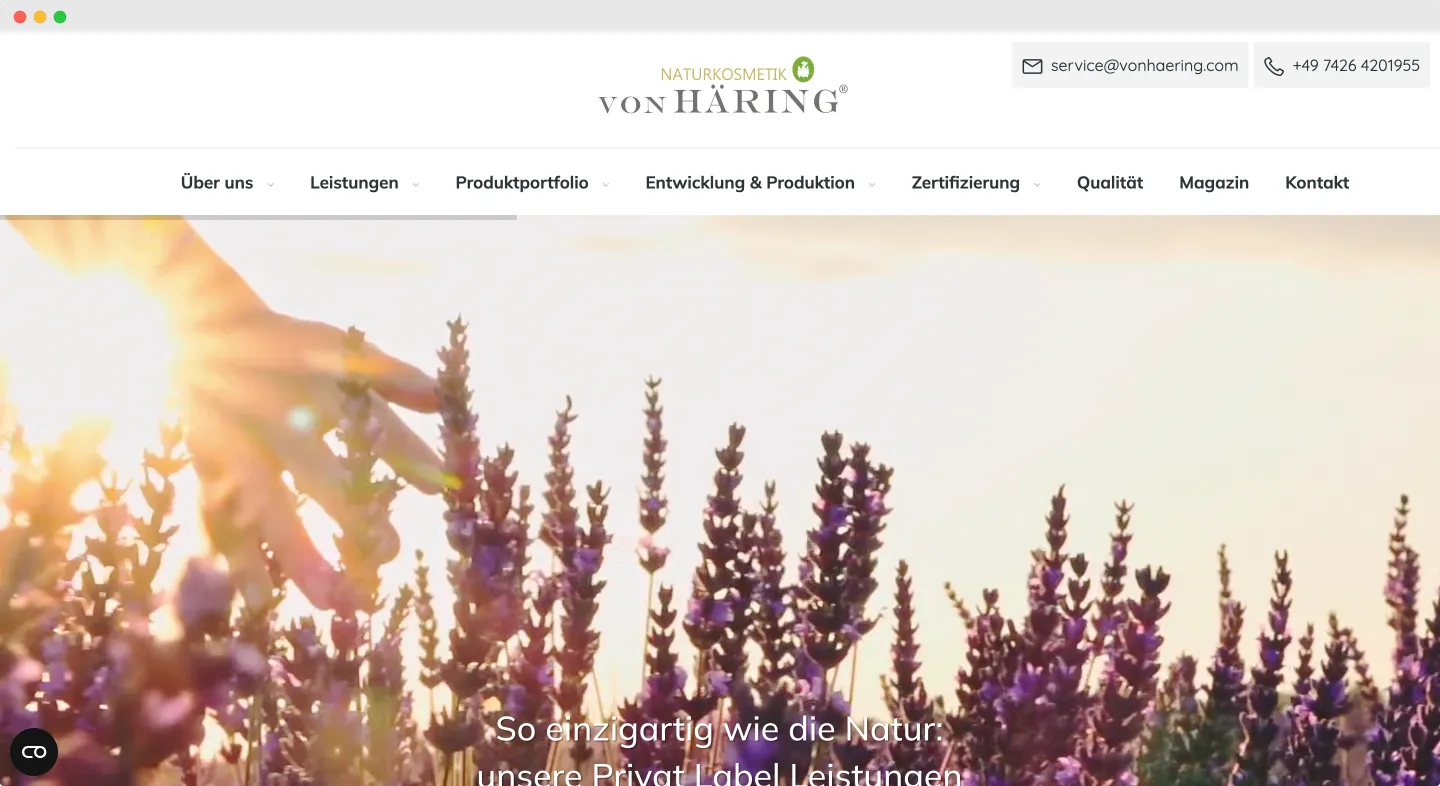 Von Hearing offers custom manufacturing services for natural and organic hair care products. Their offerings include custom formulations, production, and packaging, with a focus on sustainable and high-quality plant-based ingredients. They ensure compliance with various certification standards such as BDIH and Natrue.