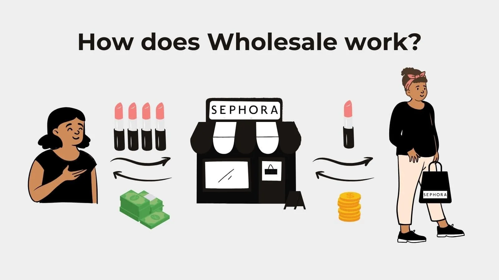 Wholesale is about selling your products in bulk to retailers. It can provide a safe source of income and get your products on many shelves.