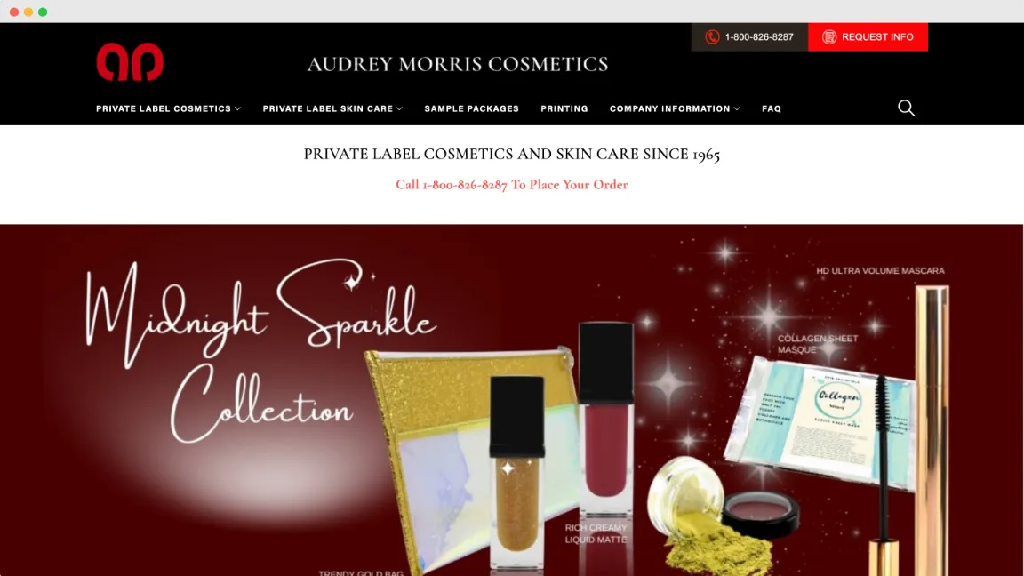 Audrey Morris Cosmetics is a so-called white label cosmetics manufacturer. This means that they offer ready-made cosmetic products that you can label with your logo. The huge advantage is the low minimum order quantity of only 3 pieces per colour and a minimum order volume of $200. The biggest disadvantage, apart from the lack of customisation, is definitely the high unit price. While you need an overall lower budget to start your color cosmetics brand, you’ll have a hard time building a sustainable business due to the narrow profit margins.