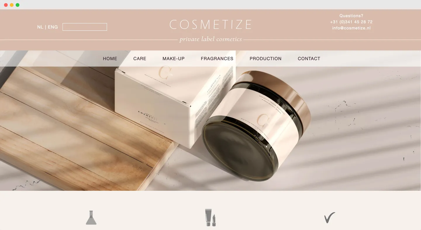 Cosmetize is the leading private label cosmetics manufacturer and product developer in the Netherlands. Many of their makeup products, such as nail polish, lipsticks, or mascaras, start with a minimum order quantity of just 1,000 pieces per color.