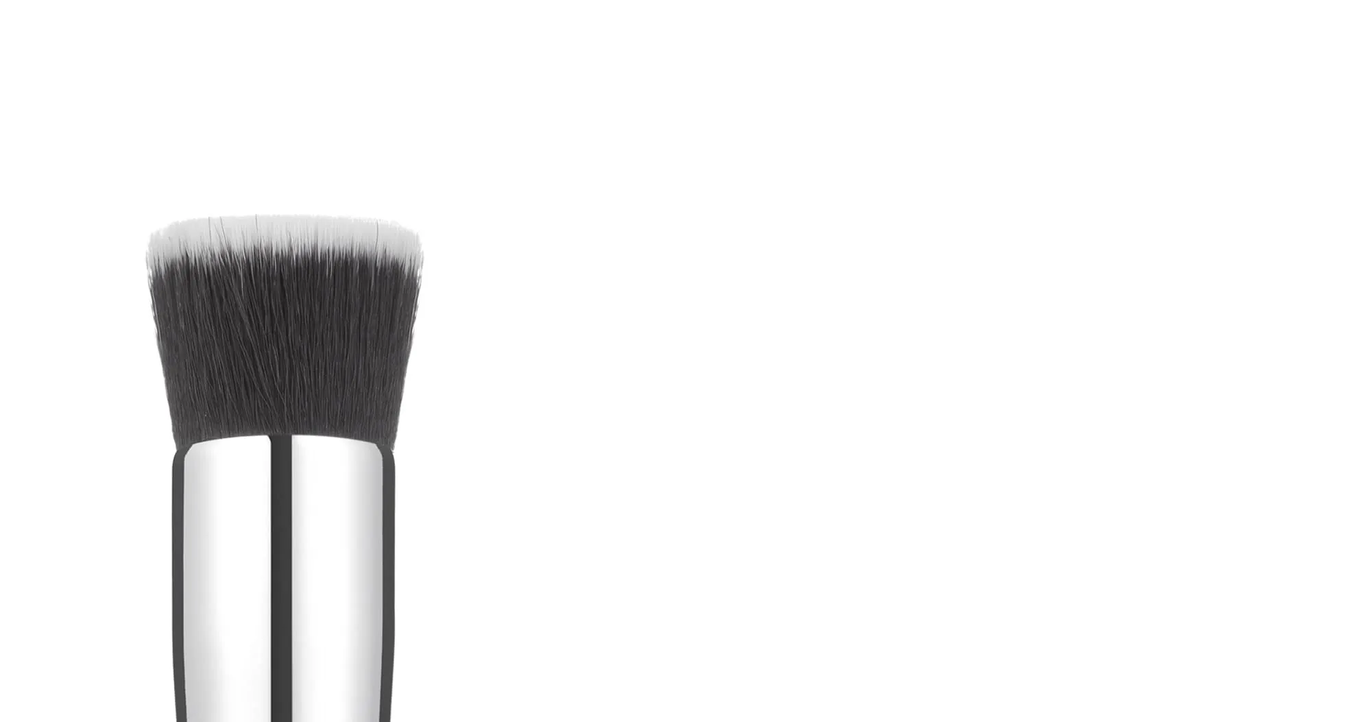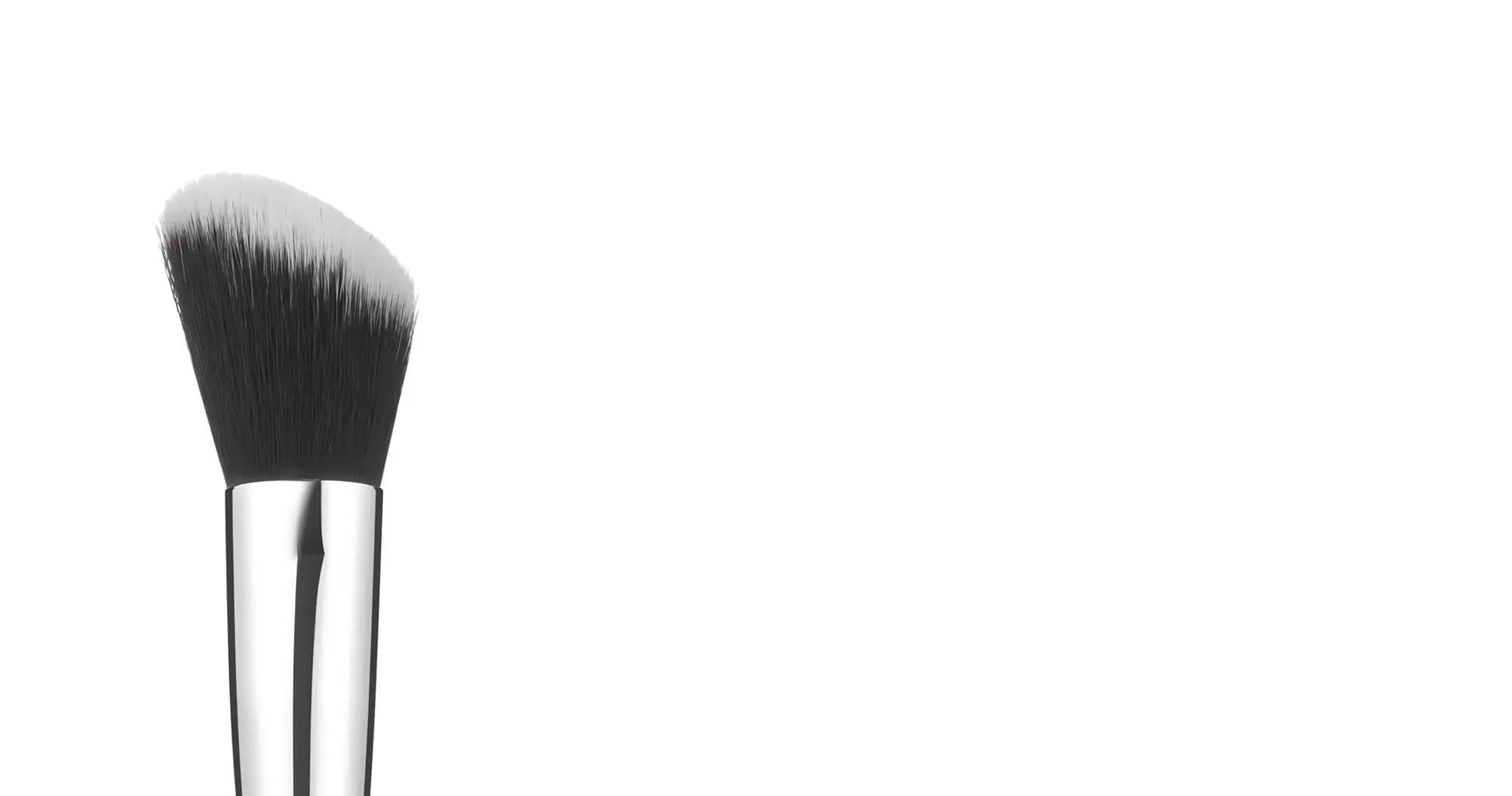 While similar to a foundation brush, a contouring brush has an angled head that allows the user to draw thick and precise lines all around the face that can then be blended in order to create precise shadows and highlights. A thick handle allows for a firm grip and tight control while layering different shades.