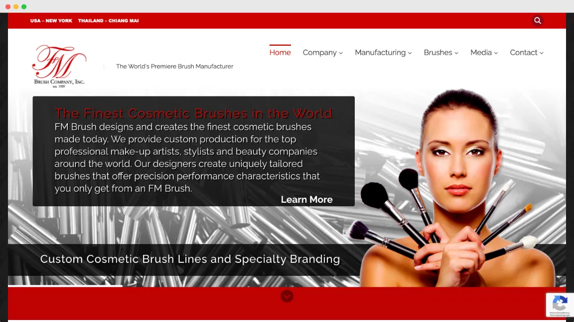 FM Brush Company’s niche is luxury makeup brushes. The company offers more than 17,000 brush styles with expansive options for brush material and size. Clients can choose from a selection of lacquered dipped handles and seamless ferrules.