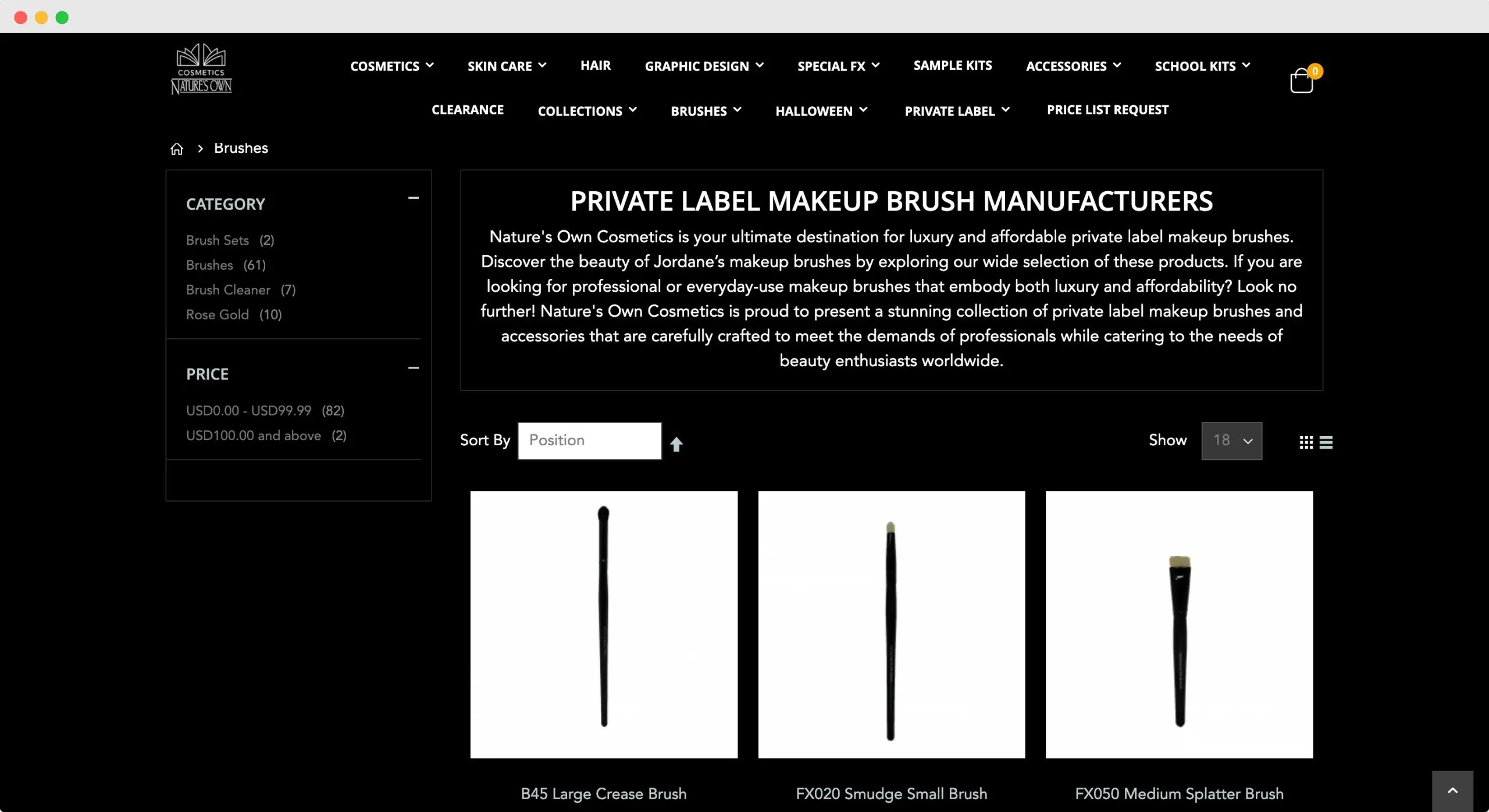 Jordane makeup brushes by Nature’s Own Cosmetics offer affordable private-label options. Available designs are suited for the needs of professional makeup artists. However, the company also provides many cost-effective options that are ideal for consumer brands.
