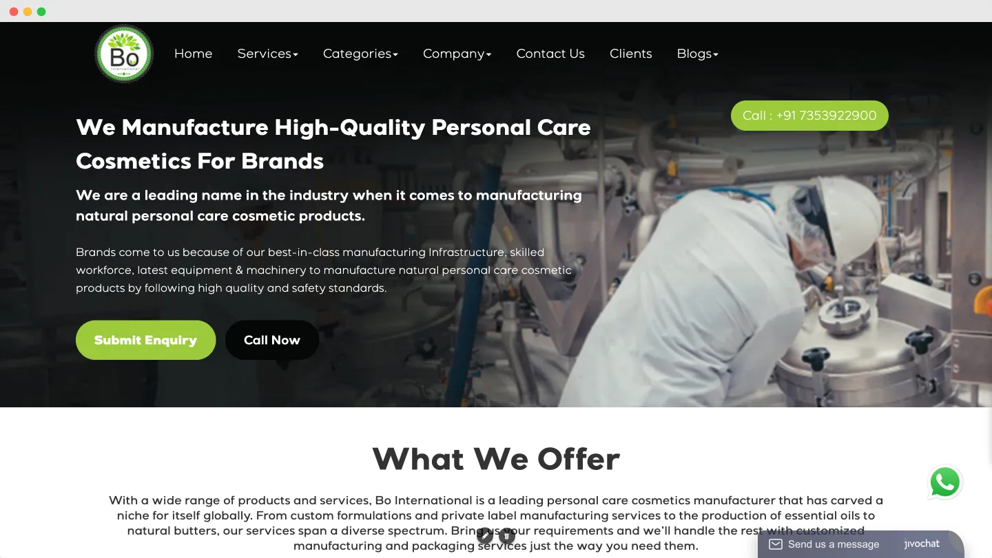 Bo International is specializes in private label manufacturing of personal care & skin care products. They are based in India but with an ISO 22716 certification, they uphold stringent quality and safety standards in their manufacturing practices.